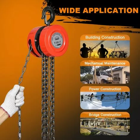 【Large gamme d’utilisations】Le palan à chaîne convient parfaitement aux garages, à la construction électrique, aux entrepôts, aux chantiers de construction, à la construction de ponts et à d’autres occasions d’exploitation.
