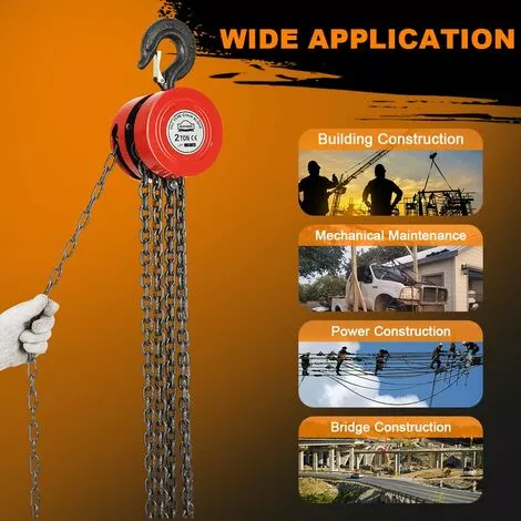 【Large gamme d’utilisations】Le palan à chaîne convient parfaitement aux garages, à la construction électrique, aux entrepôts, aux chantiers de construction, à la construction de ponts et à d’autres occasions d’exploitation.