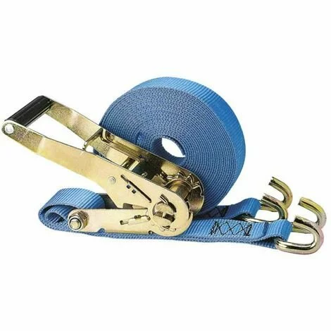 Sangle camion à cliquet. Élingues synthétiques avec deux crochets. Longueur 9 mètres environ. Résistance sanglée: 4 000 kg Résistance tractée: 2 000 kg.
