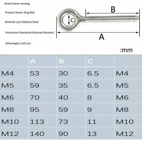Avantages du produit: boulons annulaires en acier inoxydable 304, durable, résistant, rouille en acier inoxydable.La surface du fil est lisse, la force est uniforme, il n’est pas facile à endommager et il est durable. Il est fait d’une super grande machine. Après de nombreuses expériences, il est prouvé que l’extérieur ne sera pas oxydé et rouillé.