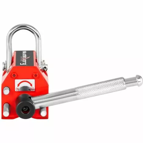L’aimant de levage / permanent manuel SBS-ML 100 – 100 kg de Steinberg Systems est parfaitement approprié pour déplacer, maintenir ou entreposer quasiment toutes charges ferromagnétiques comme des éléments en acier, des poids, des éléments de construction, de la ferraille ou des plaques. Grâce à la grande puissance de l’aimant néodyme, qui est une technologie d’aimant de maintien la plus puissante au monde, l’aimant permanent SBS-ML 100 de Steinberg Systems peut soulever de lourdes charges jusqu’à 100 kg. Lorsque l’aimant est placé sur la charge à soulever, il suffit simplement d’actionner le levier pour activer le magnétisme. Après utilisation, vous pouvez démagnétiser l’aimant en actionnant de nouveau le levier, ce qui vous permet de décharger la charge tractée en toute simplicité et sureté. Un mécanisme spécial et sophistiqué de sécurité empêche un actionnement involontaire et non voulu du levier. Étant donné que l’aimant de levage SBS-ML 100 fonctionne entièrement sans électricité, son utilisation n’est limité ni par un câble, ni une prise électrique mais aussi sans temps de traction ni temps de chargement supplémentaire. Bien que l’aimant de levage possède une structure très compacte, jusqu’à 100 kg peuvent être tractés dans la mesure où le revêtement de la charge ne soit pas pollué et n’influence pas la performance de l’appareil. L’appareil dispose d’une grande sécurité d’utilisation grâce à son énorme résistance de déchirement de 300 kg. Un autre avantage concerne le fait que les matériaux ferromagnétiques et non-ferromagnétiques sont déjà triés pendant l’utilisation de l’aimant, étant donné que seuls les matériaux magnétiques peuvent être attirés.