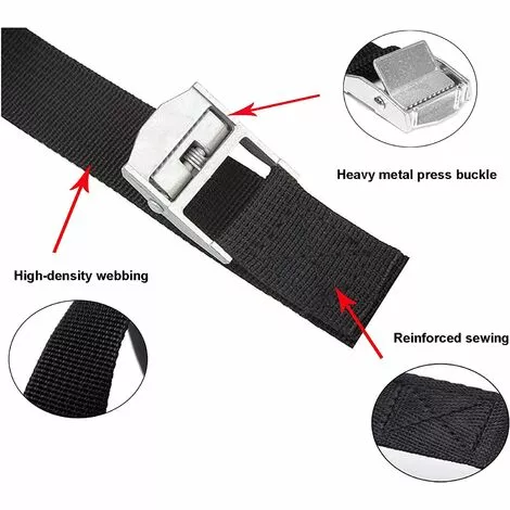 Facile utiliser Fixez d’abord la marchandise avec sangles de chargement, puis fixez avec une boucle en mtal. Vous pouvez facilement ajuster sangles solides dans la mesure o vous en avez besoin pour vous assurer que les marchandises peuvent tre parfaitement fixes.