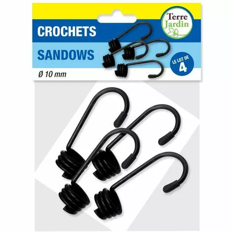 - Ne jetez plus vos sandows élastiques car ils ont perdu leur crochet ! Ce lot de 4 crochets métalliques gainés en plastique viendra parfaitement s’adapter sur vos tendeurs de même diamètre.