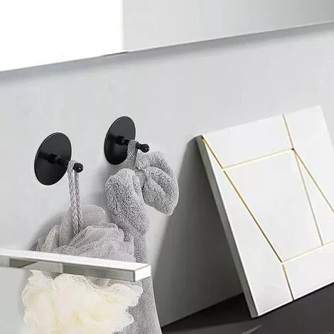 Design de style simple: total de 4 crochets adhésifs de haute qualité, avec surface noire de la poudre de poudre et perspectives uniques (fines avec des perles anti-gouttes parfaites), ces crochets muraux sont la rouille de l’eau et la preuve d’huile.
