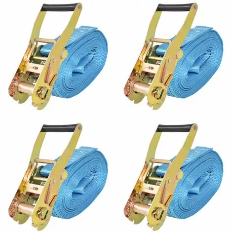 Ces sangles d’arrimage à cliquet robustes peuvent généralement être utilisées pour la fixation ou le serrage de la cargaison pour le transport ou le stockage. Les sangles solides et robustes sont fabriquées en polyester de haute qualité et ont une capacité de charge de 4 tonnes chacune. Les sangles d’arrimage ont été fabriquées pour répondre à la norme européenne EN-12195-2. En outre, elles sont équipées de cliquets faciles à utiliser et à dégagement rapide pour maintenir le serrage pendant le transport afin de garantir que les charges restent en place. La livraison comprend 4 sangles d’arrimage à cliquet.