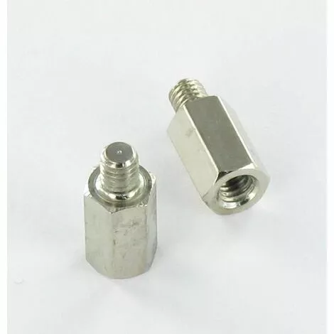 ENTRETOISE HEXAGONAL MALE/FEMELLE 5X8 FILETEE SUR 6 M3/3.5 LAITON NICKELEENTRETOISE HEXAGONAL MALE/FEMELLE 5X8 FILETEE SUR 6 M3/3.5 LAITON NICKELE