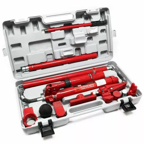 Un ensemble de vérin hydraulique pour carrosserie avec une force de pression de 10 tonnes qui représente l‘outil parfait pour l‘usage professionnel dans les ateliers et le domaine de la construction. L‘outil trouvera aussi son utilité dans le domaine du bricolage. Grâce à sa fabrication de qualité industrielle, le kit de redressage est parfait pour une utilisation quotidienne dans l’atelier et le garage.